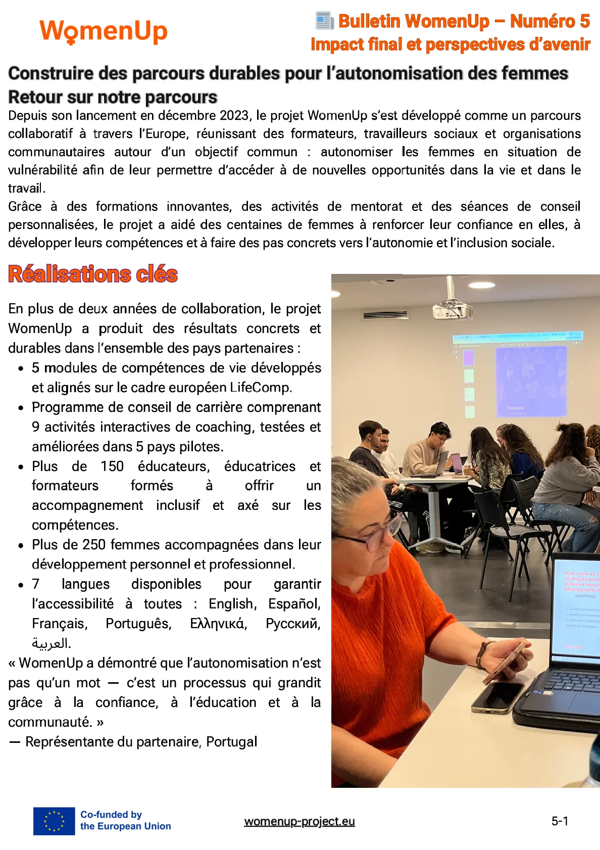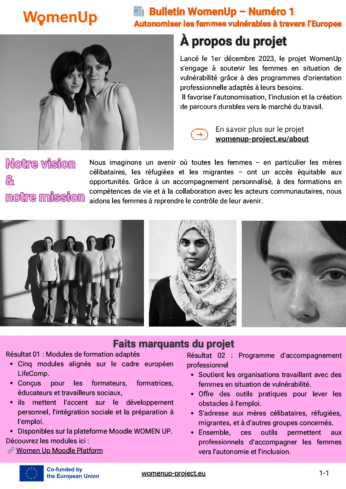 « Restez informé des derniers développements et des progrès réalisés par le consortium WOMEN UP alors que nous autonomisons les femmes vulnérables en leur offrant des compétences essentielles et des conseils professionnels.
